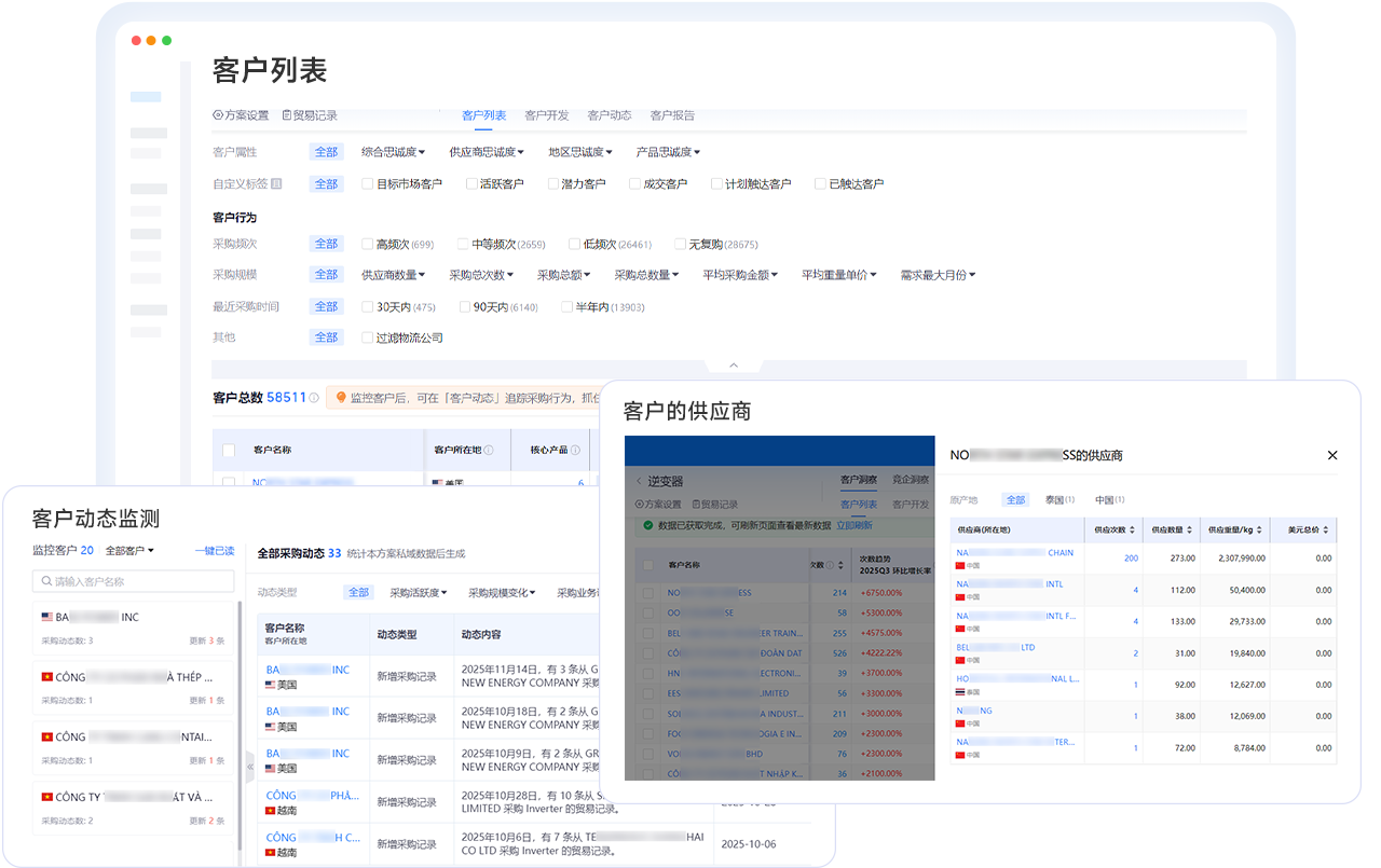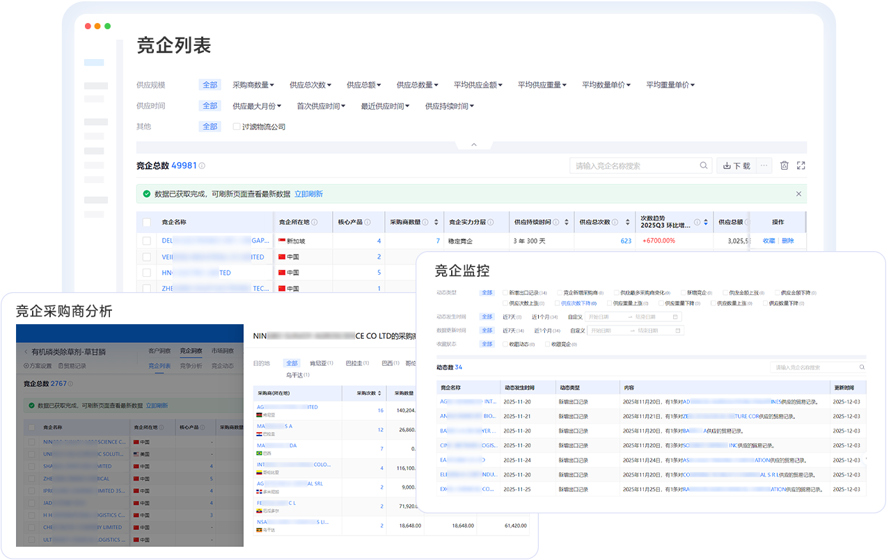 摆脱人工手动搜索与分析,顺利获得AI『智能监测』贸易、客户、竟企动态,在动态变化中发现商机