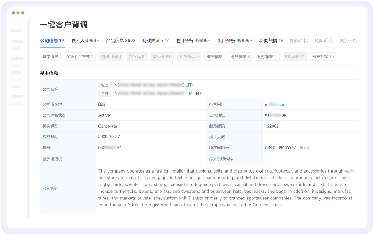 • 一键客户背调