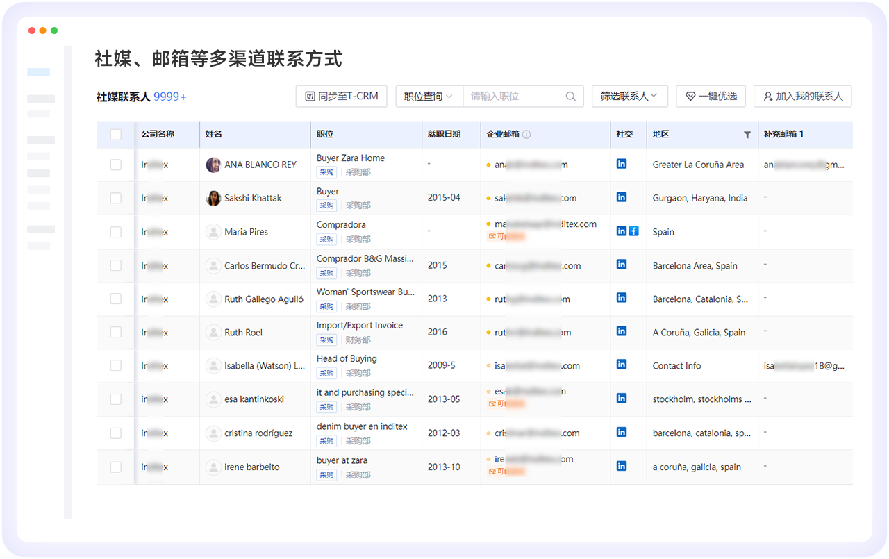 包含关键决策人的职务、电话、邮箱、领英Facebook等信息,助力企业社交营销