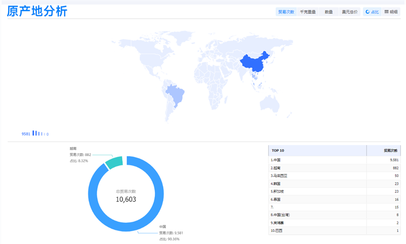 例如,利用【J9国际站 J9 外贸通SaaS平台】查看家具产品的进出口贸易记录,J9国际站 J9 可以比较不同国家/地区的贸易量和贸易额,分析市场的进口和出口情况。