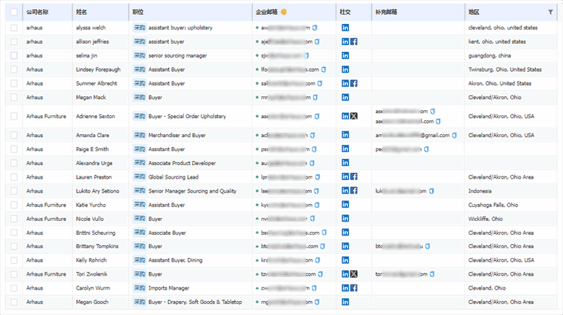 联系人数据库让您轻松获取采购、高管等关键决策人的详细资料,包括邮箱、领英、Facebook 等社交账号,为业务拓展给予有力支撑。